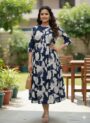 This looks like a classic Navy Blue Floral Rayon Kurti. Based on the image and the fabric details you provided, here is a polished product description you can use for an online listing or social media post.